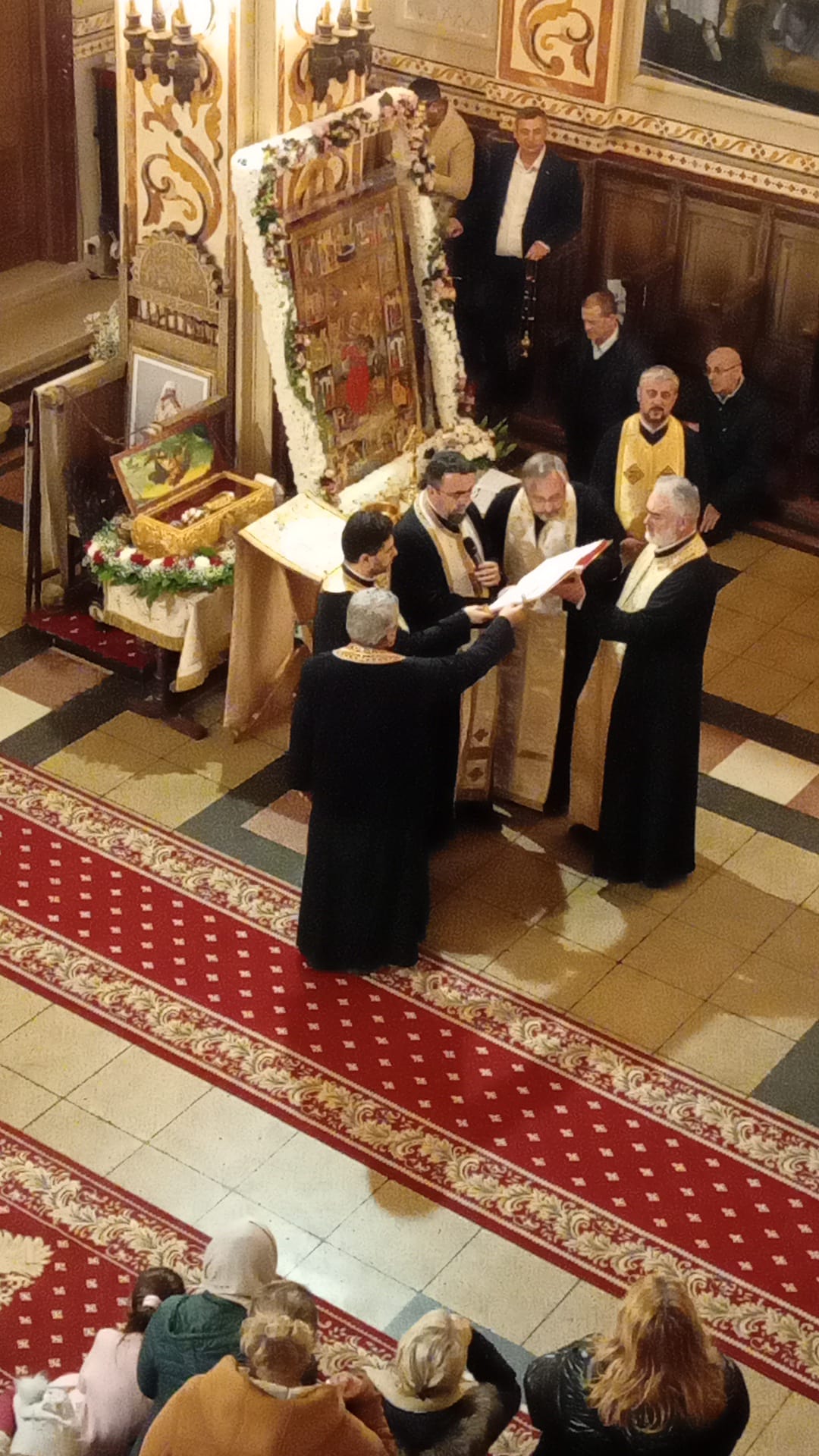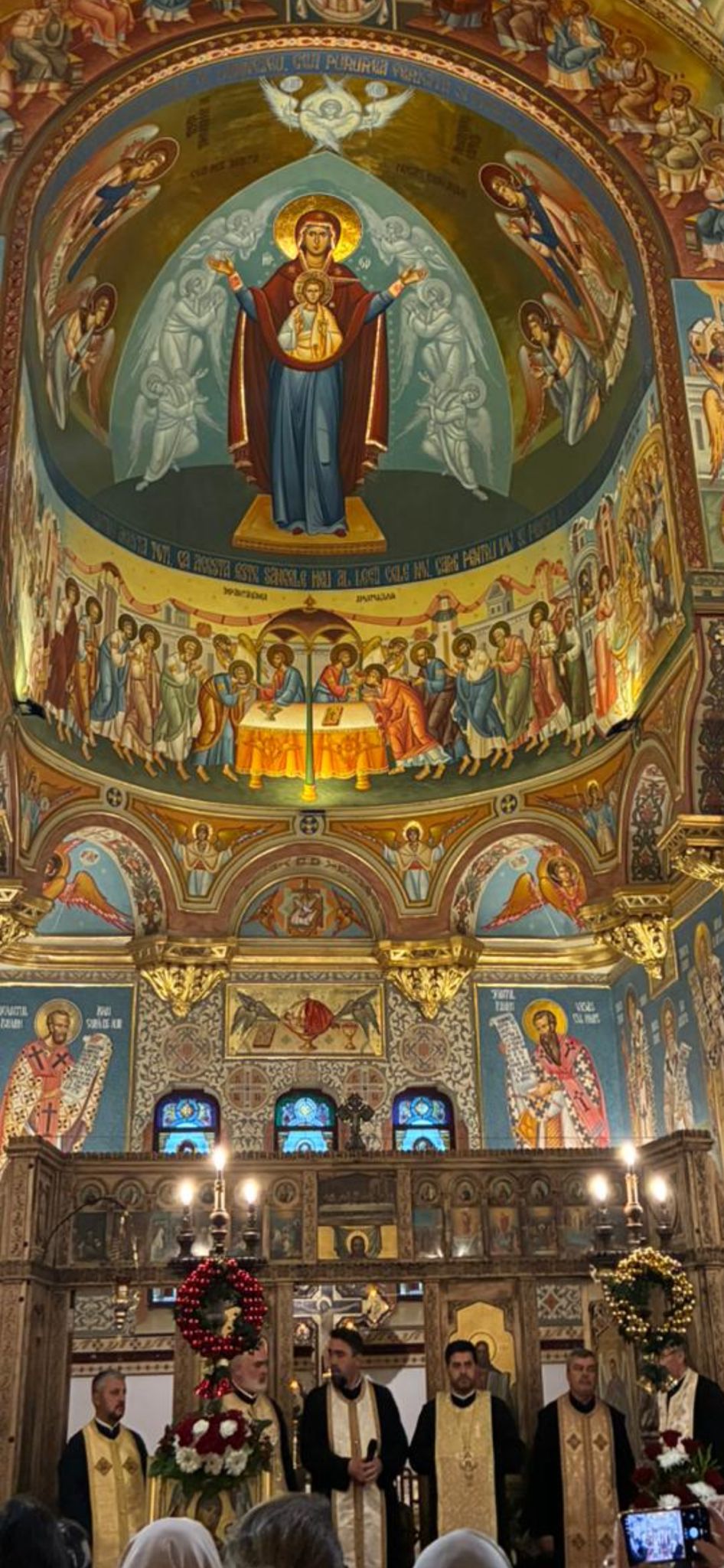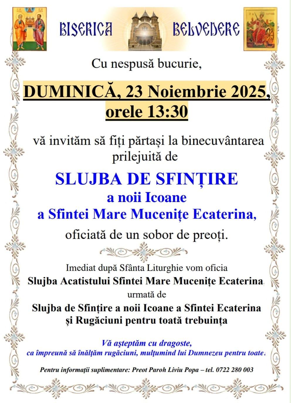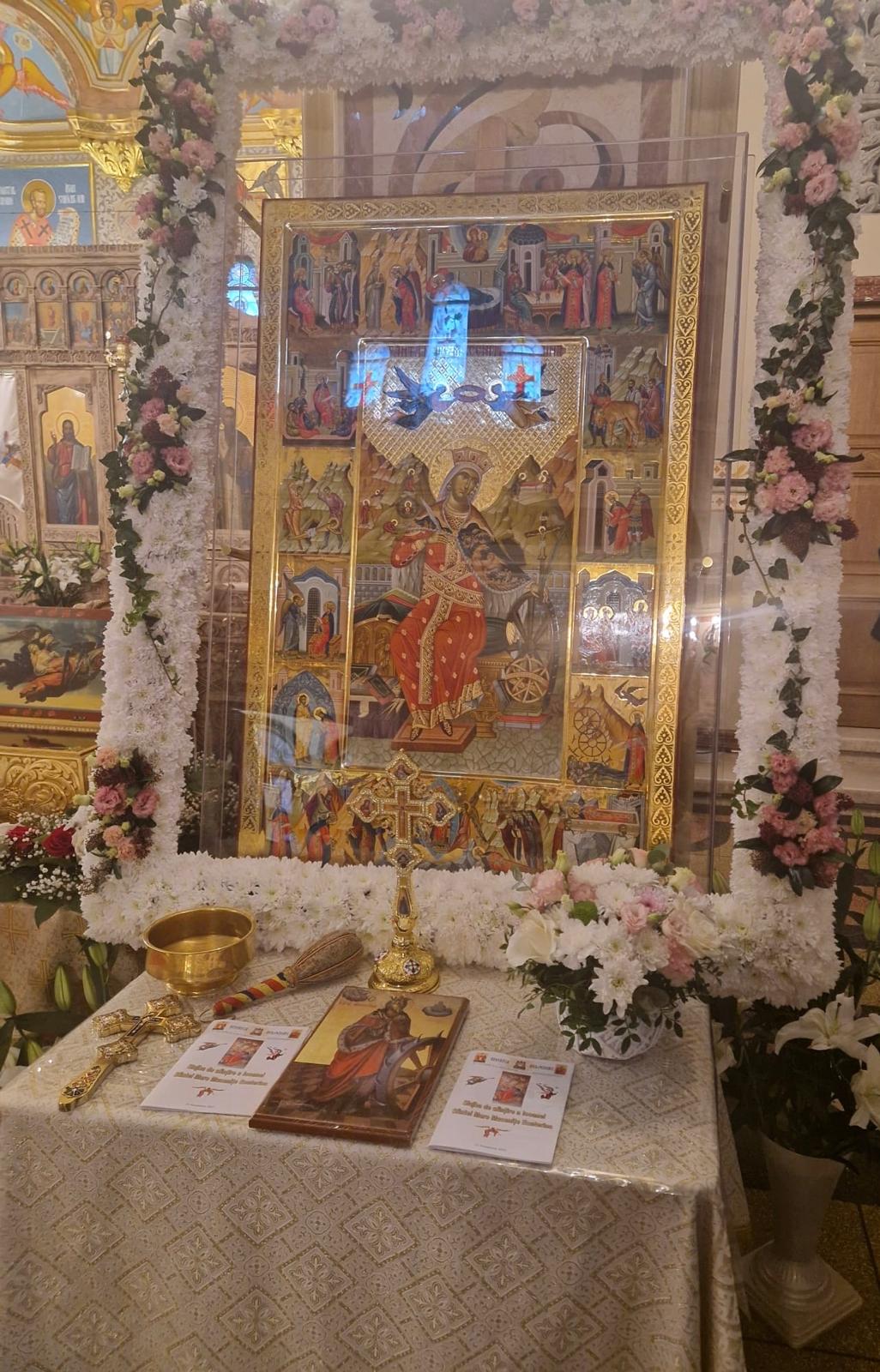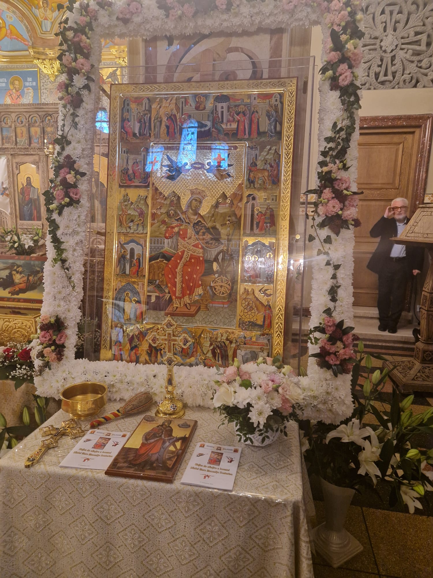Cu mare bucurie și emoție, comunitatea bisericii noastre a participat Duminică – 23 Noiembrie 2025 – la Slujba de sfințire a icoanei Sfintei Mare Mucenițe Ecaterina pe care sunt reprezentate și 18 scene din viața Sfintei – icoană unicat în spațiul ortodox.